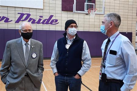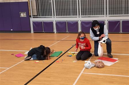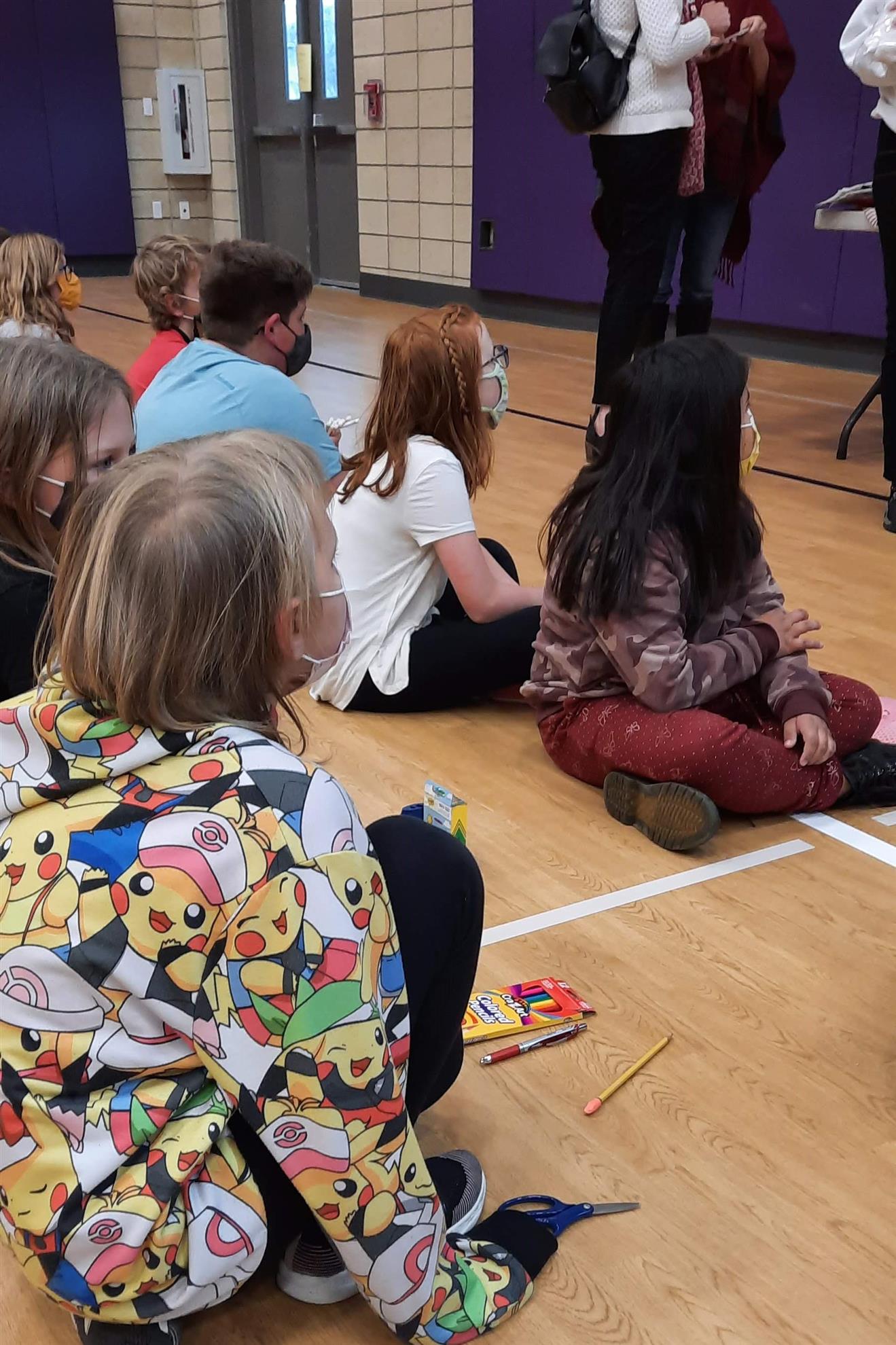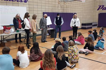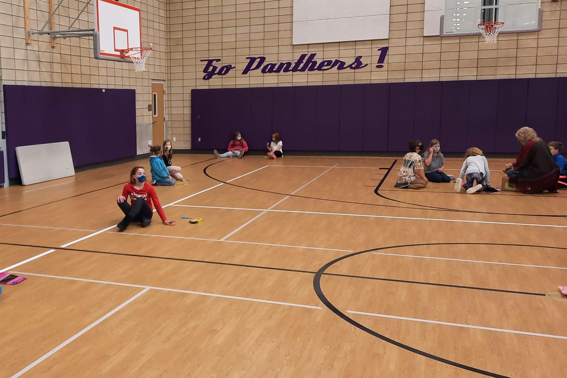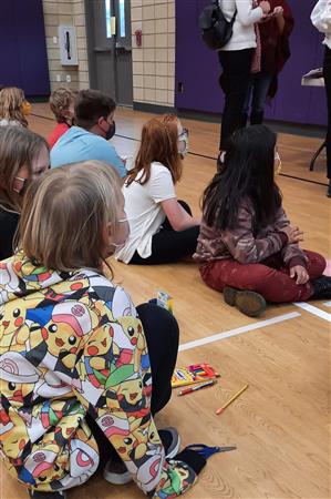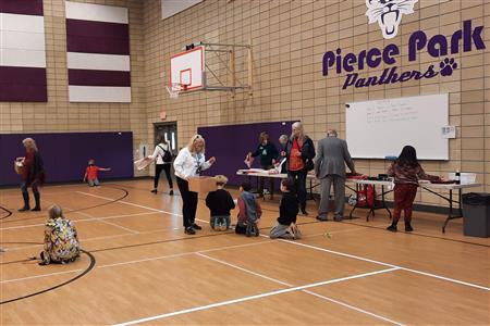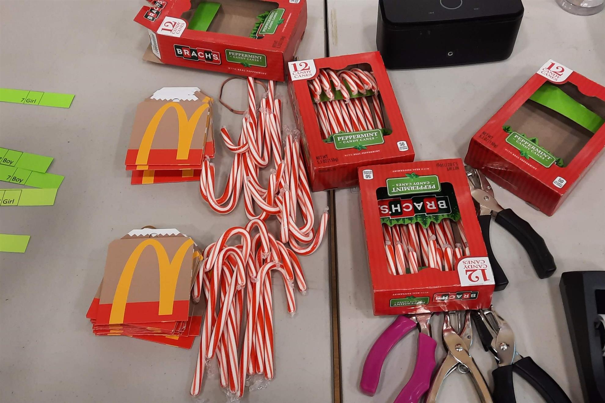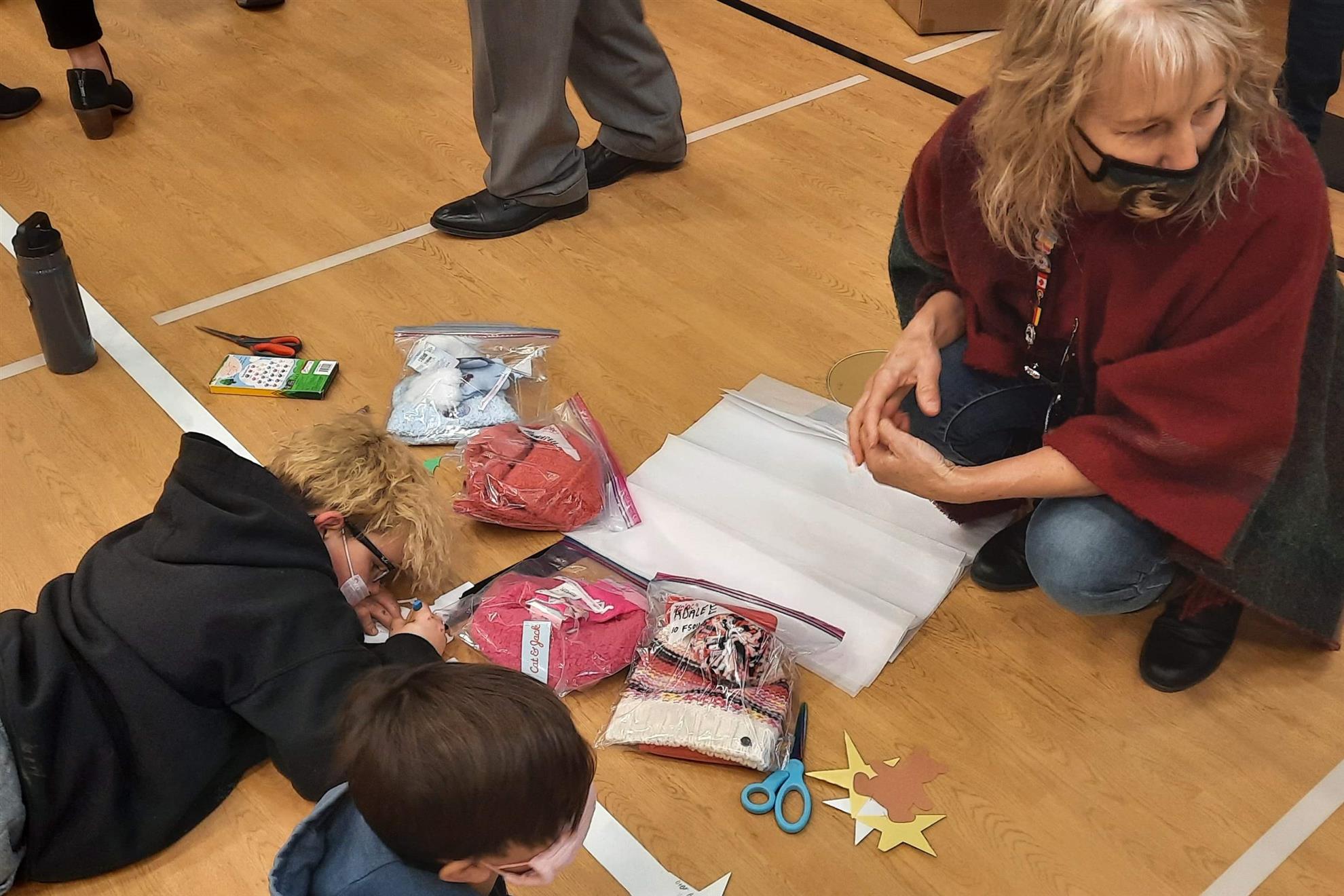 Dec. 9, 2021, event with Mr. Brad Fackrell's 5th-grade class from Pierce Park Elementary. We provided hats, mittens, $5 McDonald's gift cards and other small items for 42 Family Advocate-sponsored youth. The 21 5th-grade students wrote cards and put the gifts in bags with tissue. This event occurred in the new Pierce Park gymnasium.